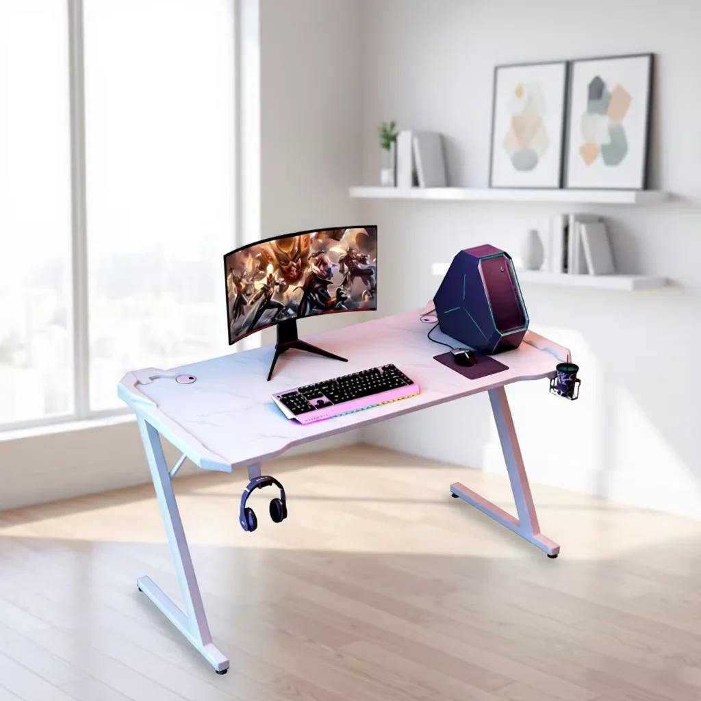 Hot Sale Gaming Desk for Gamer Gaming Table with RGB Computer Desk with Cup Holder Z-Sharped Gaming Tables